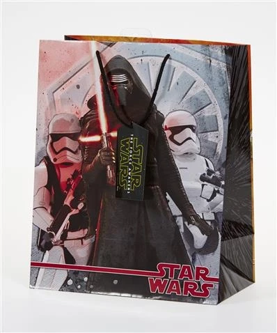 This beautiful Star Wars Gift Bag is made from high-quality glossed card, and features Kylo Ren with two First Order Stormtroopers on the front, and C-3P0, R2-D2, and BB-8 on the back.